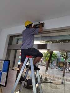 最后,李红伟师傅还承担起安装门头门牌的任务。他精心测量、准确安装,让门头门牌成为了经开移动的一道亮丽的标识。